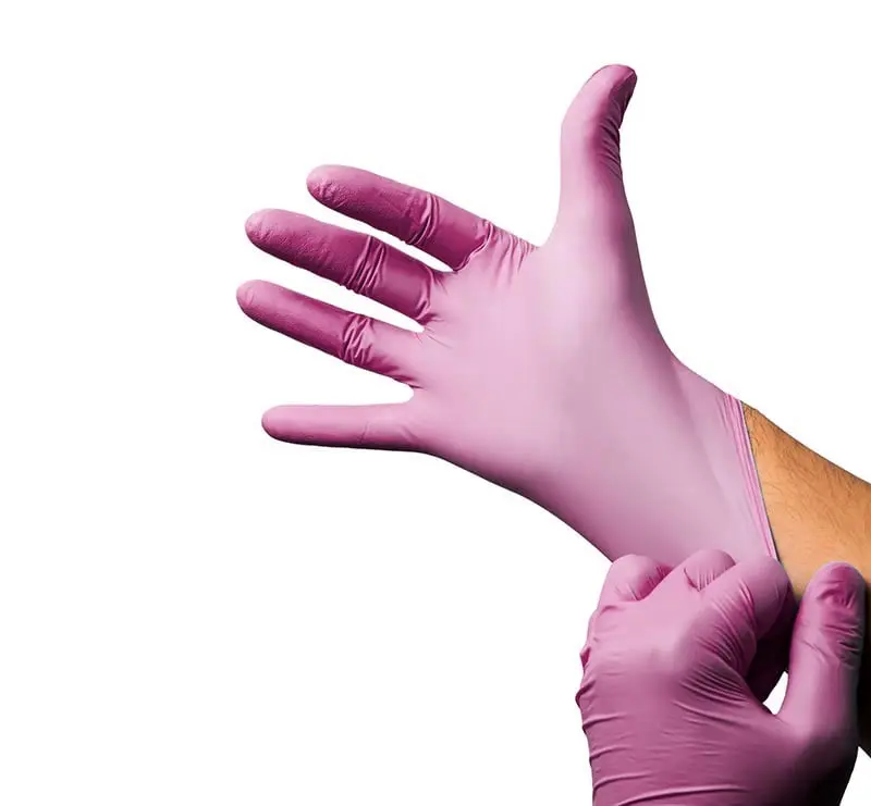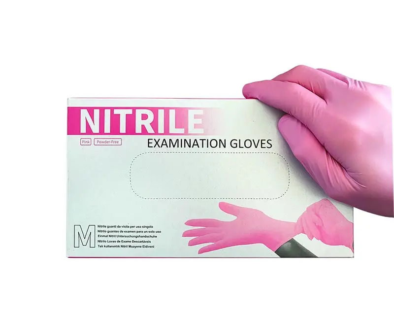 Guantes desechable de Nitrilo LM sin polvo 3.5 Gramos color Rosa.